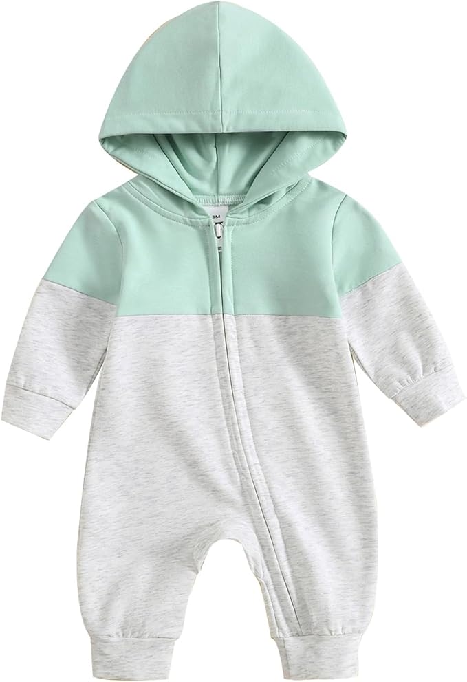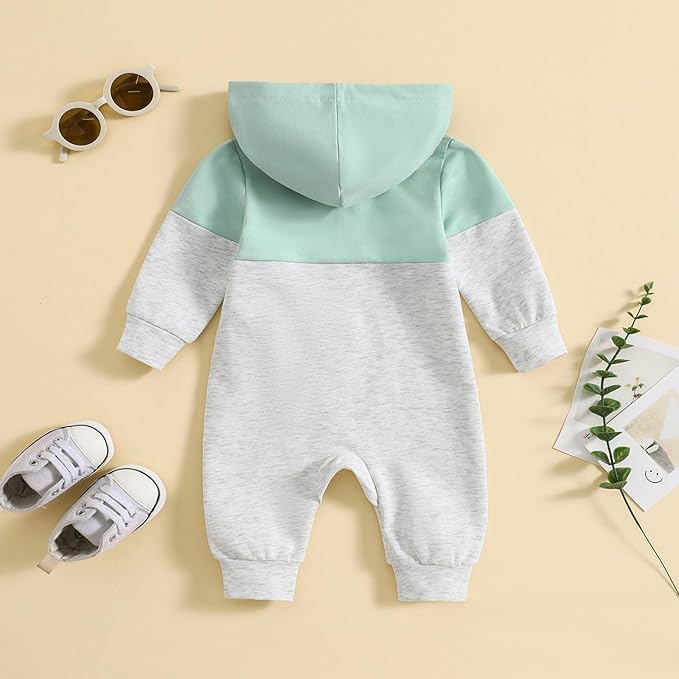 • Cute Design: Contrast colors to add a touch of excitement to your child's wardrobe. Baby boy jumpsuit with long sleeves, hooded and zippered closure design to make your baby more attractive when wearing it