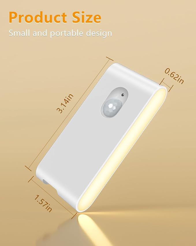 • [Two Easy Install Methods] - There are 2 convenient installation methods for the motion activated night light. Method 1: Magnetic Attachment – The sensor lights indoor can be easily attached to any magnetic surface, no tools needed. Method 2: Adhesive Iron Sheet – Simply use the included double-sided adhesive iron sheet to stick the night light motion sensor anywhere you prefer. The strong magnetic force ensures it stays securely in place, and it's easy to remove for charging. The rechargeable night light is also compact and lightweight, making it highly portable—ideal for travel or business trips.
