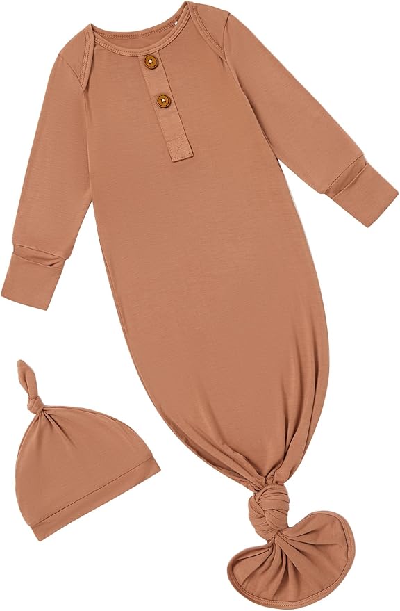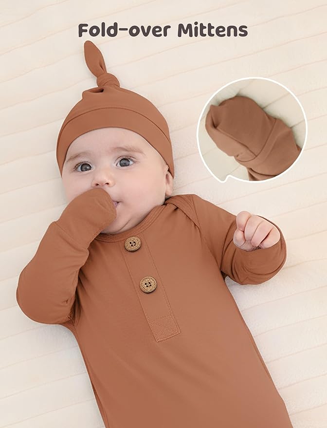 • đź’–Gentle for Sensitive Skin – All-natural, irritation-free materials are perfect for sensitive skin. Parents can feel confident their little one is wrapped in safe, chemical-free fabric. This knotted gown is also a reassuring gift for new parents.