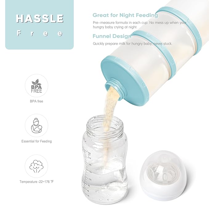 • Night Time Feeding: Pre-measure baby formula and store in the formula container, quickly make bottles at deep night or early morning. No hassle when hungry baby is crying.