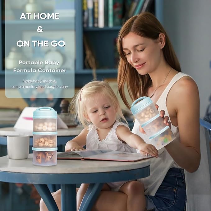 Termichy Stackable Formula Dispenser Portable Milk Powder Container, 2 Pack, Light Blue