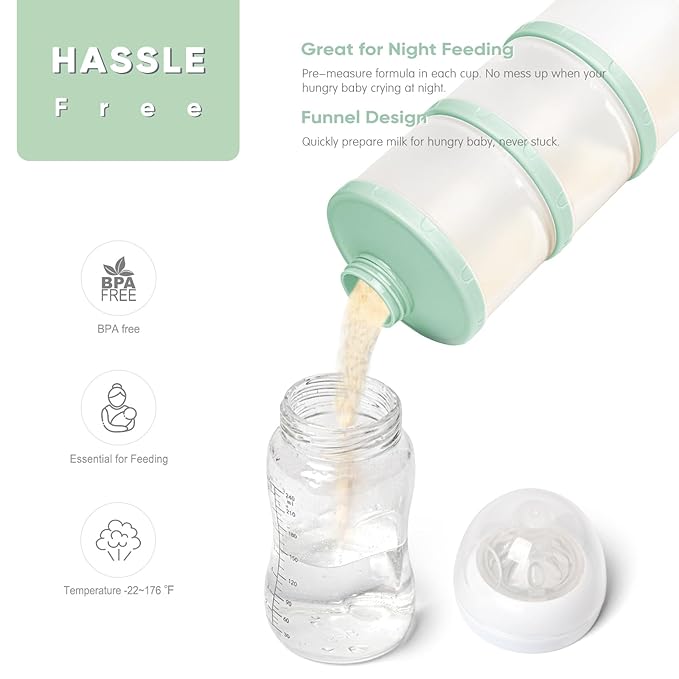 • Night Time Feeding: Pre-measure baby formula and store in the formula container, quickly make bottles at deep night or early morning. No hassle when hungry baby is crying.
