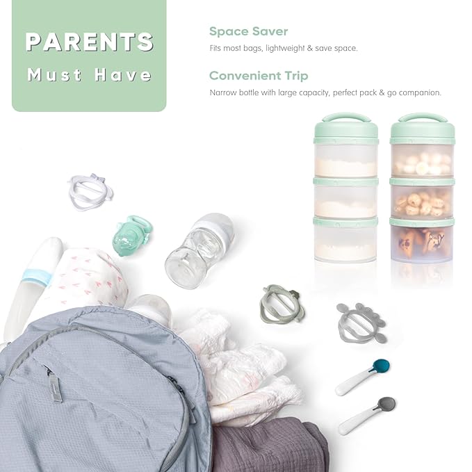 Termichy Stackable Formula Dispenser Portable Milk Powder Container, 2 Pack, Light Green