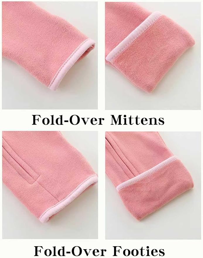 Newborn Baby Bear Onesie Winter Snowsuit With Fold-over Mittens & Footies Zip Up Baby Fleece Jumpsuit 0-18M