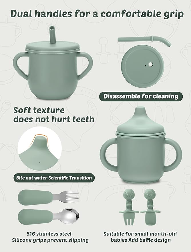 • Easy to Clean: these baby self eating supplies are easy to wash, and can be put into the dishwasher for easy cleaning, so that you no longer feel a headache from too much tableware, saving time and effort; In addition, they can withstand high temperatures, suitable for microwave use