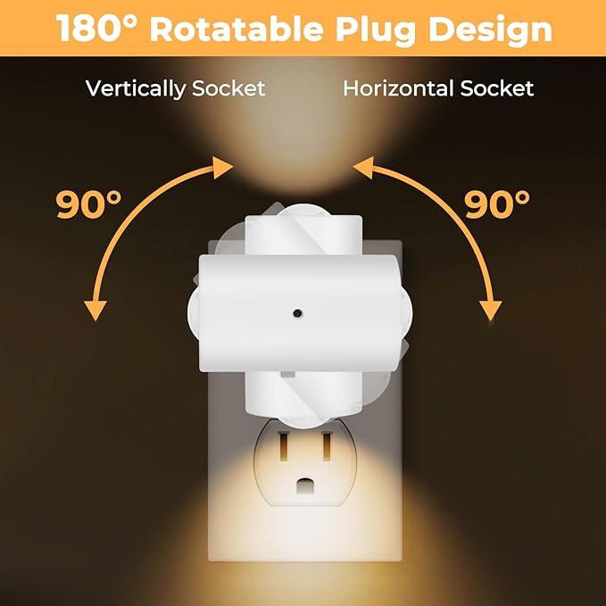 • 🎯 180° Rotatable Head & 4-Pack Value Set Direct light exactly where you need it! The unique 180° rotating head allows you to aim the soft light at walls, ceilings, or floors to prevent glare and create the perfect illumination. This 4-pack offers exceptional value, allowing you to secure key areas like hallways, stairs, bathrooms, and kids' rooms.