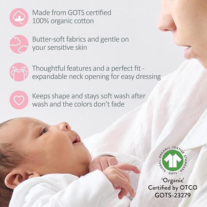 • 100% ORGANIC COTTON: Made from butter-soft GOTS certified organic cotton and gentle on sensitive skin.