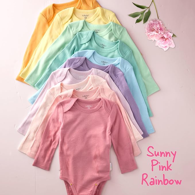 • MADE TO MATCH: Designed just for you in a 10-pack of happy hues in rainbow colors, these long sleeve bodysuits are made to match with perfectly coordinating pants, caps, mitts and so much more!