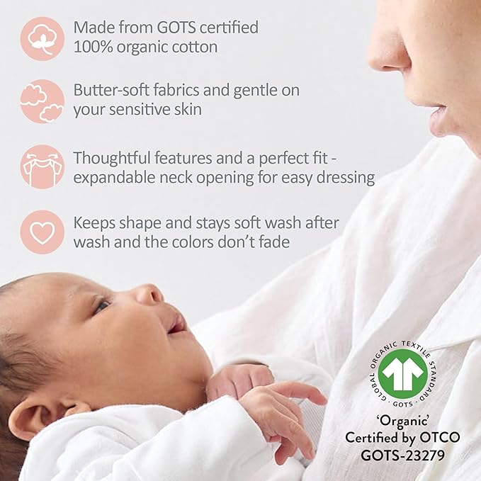 • 100% ORGANIC COTTON: Made from butter-soft GOTS certified organic cotton and gentle on sensitive skin.