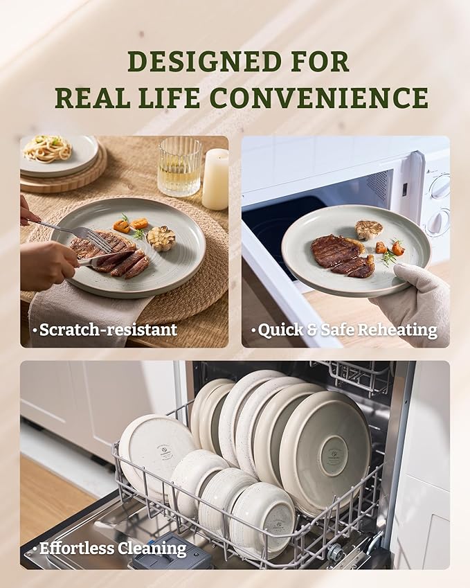 • 【DISHWASHER AND MICROWAVE SAFE】Our dishes have passed microwave and dishwasher safe testing at internationally accredited laboratories. Each plate and bowl is dishwasher safe and microwave safe.