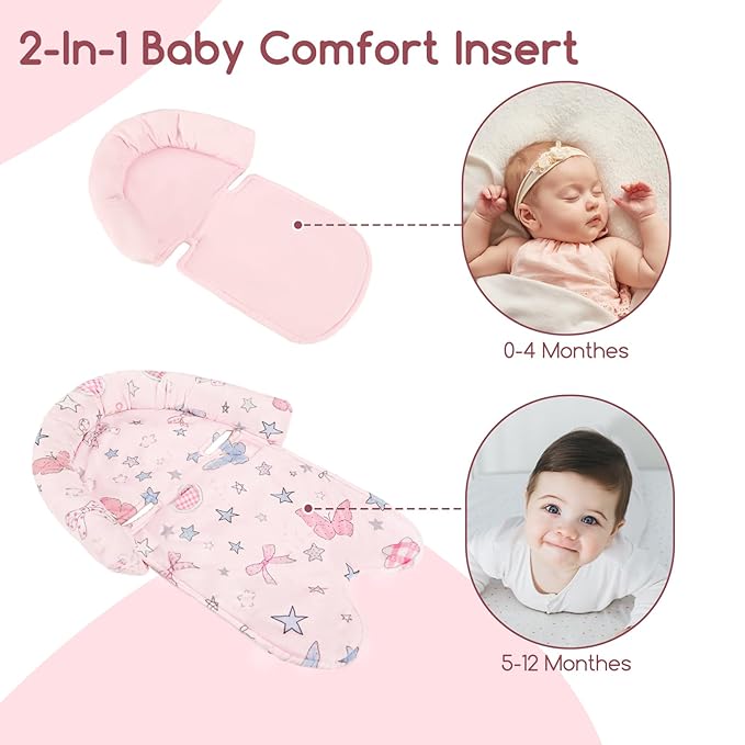 • Quality Soft Fabric: This cute infant car seat insert head and body support is made of soft plush fabric, cozy and lightweight, provides comfortable support for baby's head and body without irritating baby's delicate skin