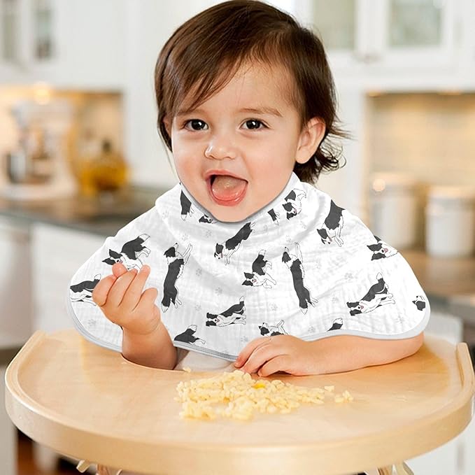 4 Pack Muslin Burp Cloths Collie Dog Paw White Cotton Baby Burp Cloths Extra Absorbent and Soft Burping Cloth for Newborn Babies Boys Girls 22x11 Inch