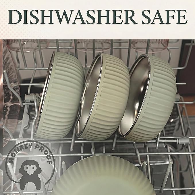 • WORRY AND HASSLE FREE: Monkey Proof stainless and silicone bowls won’t shatter like glass, leach toxic chemicals into your kids food like plastic and bamboo, or fly off the table and clatter like regular stainless steel dishes. These bowls are easy to clean (Dishwasher Safe), stain resistant, and unbreakable!
