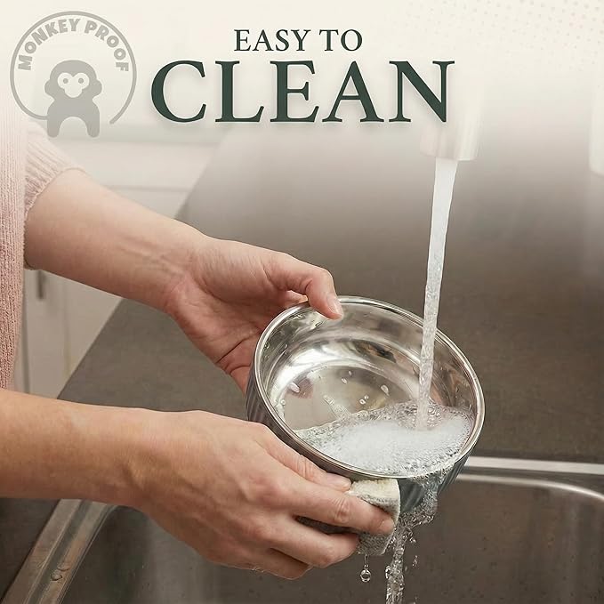 • WORRY AND HASSLE FREE: Monkey Proof stainless and silicone bowls won’t shatter like glass, leach toxic chemicals into your kids food like plastic and bamboo, or fly off the table and clatter like regular stainless steel dishes. These bowls are easy to clean (Dishwasher Safe), stain resistant, and unbreakable!