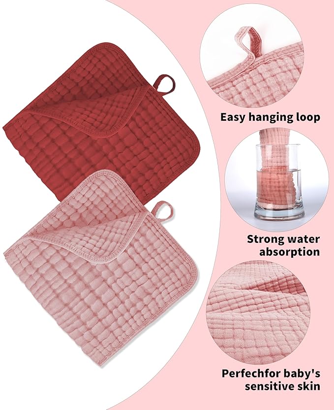 • Versatile Baby Essential & Perfect Gift:These muslin burp cloths come in a gender-neutral color,making them a perfect gift for any occasion,whether it's a baby shower,birthday,Christmas,or baby registry.In addition to being burp cloths,they can be used as baby bibs,washcloths,towels,wipes,rags,dust cloths for cars,and more.A must-have for teething babies to help manage messes.