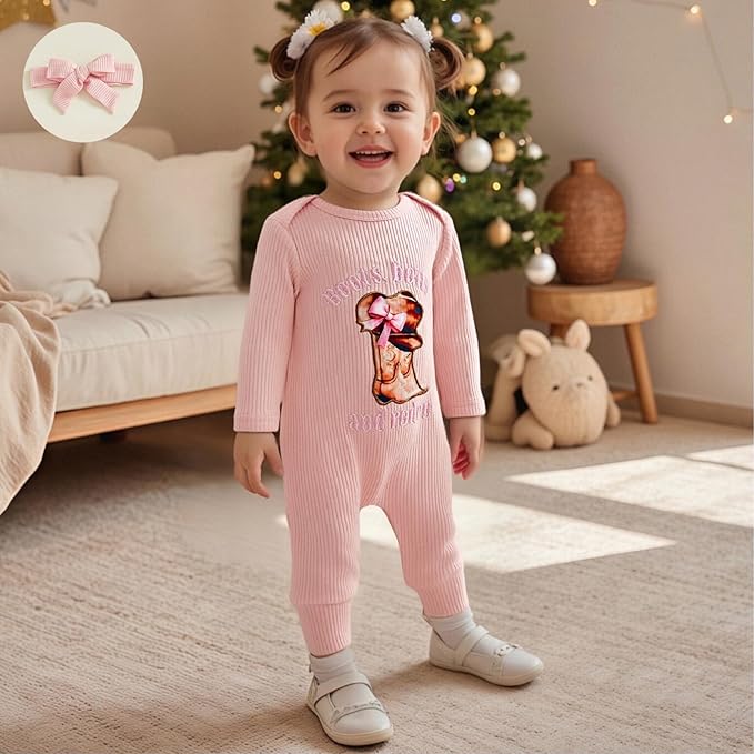 • Unique Design Elements: The infant girl romper features long sleeve, crew neck, snap buttons, letters, boots, cowgirl hat embroidery, paired with the same color headband, that add a playful western flair