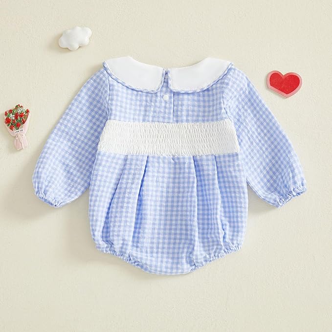 • Design: Newborn baby boy valentines day outfit, baby boy bubble romper, smocked baby boy clothes, baby boy long sleeve romper with mamas boy embroidery, plaid print, long sleeves, doll collar, crotch buttons, make your baby more attractive when wearing it