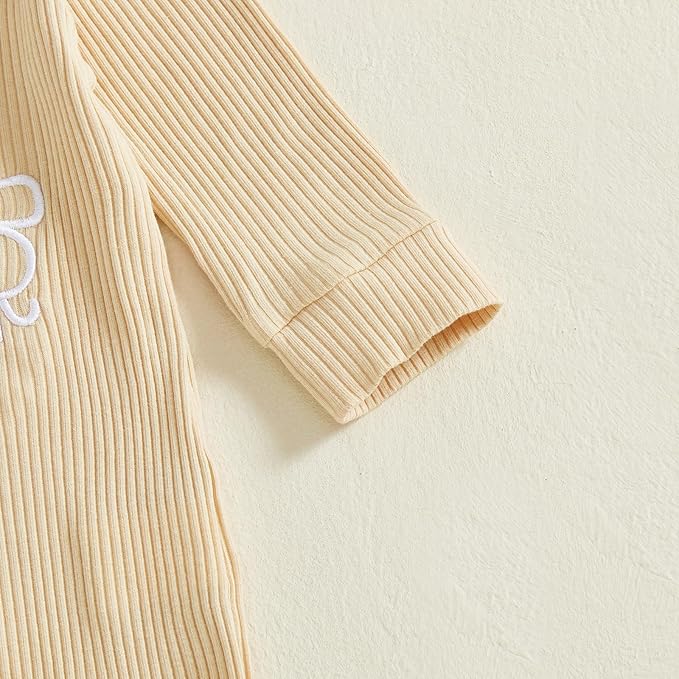 Newborn Baby Boys Romper Long Sleeve Little Brother Letter Print Ribbed Bodysuit Jumpsuit Infant Coming Home Outfit