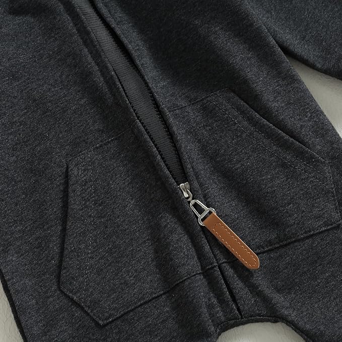 • Cute Design: The toddler jumpsuit has long sleeve, hooded, zipper closure, 2 pockets, simple solid color never out of fashion