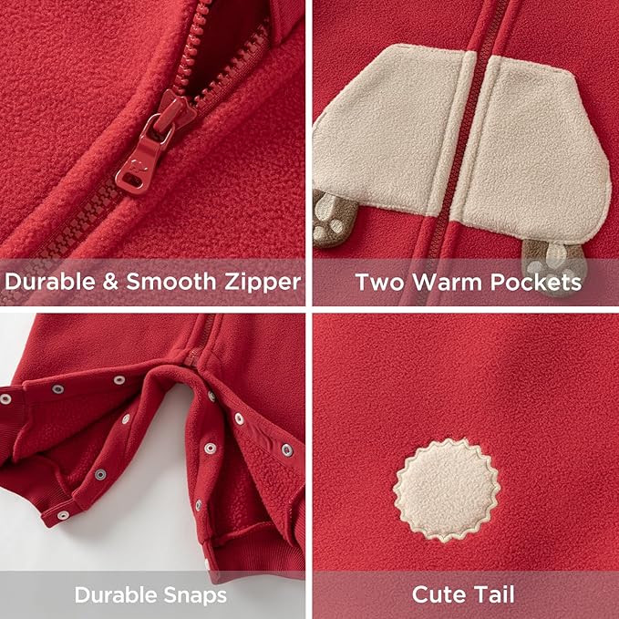• 【Car-seat Friendly Infant Bodysuit】Engineered for warmth without weight, this fleece onesie jumpsuit keeps your baby cozy without the bulk. Its car-seat-safe profile ensures hassle-free travels. Ideal for daily adventures, family trips, and special occasions like Christmas, Halloween, or birthday parties, making it an excellent gift choice.