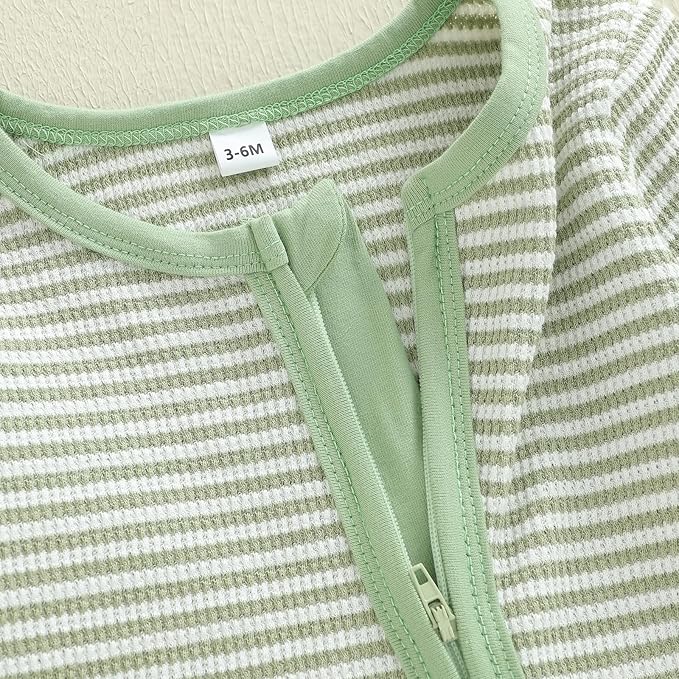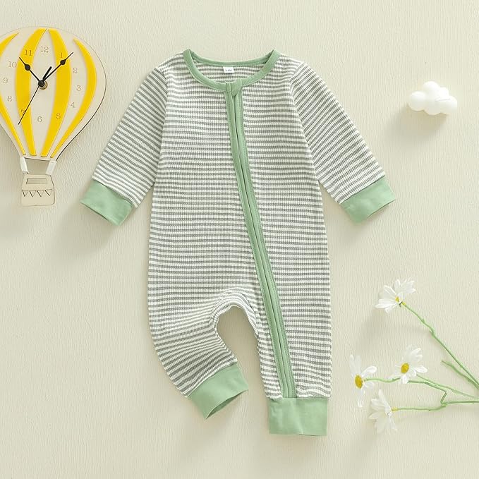 • Package Include: 1 PIECE: Newborn baby boy fall winter clothes striped waffle knit zipper romper bodysuit long sleeve jumpsuit one piece outfit