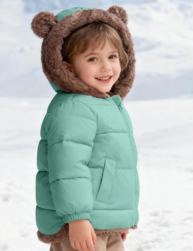 COZYPOIN Toddler Baby Boys Girls Winter Fleece Jackets Cute Bear Hooded Coats Little Kids Warm Windproof Outerwear for 1-6T