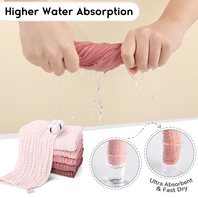 • Care Without Hassle: Pre-washing technology effectively reduces the shrinkage and reinforced edges prevent unraveling, which ensures the baby burp cloths can be machine washed and dried at low temperatures, it will still in shape and even get softer after washing several times. We care not only for babies, but also for busy parents!