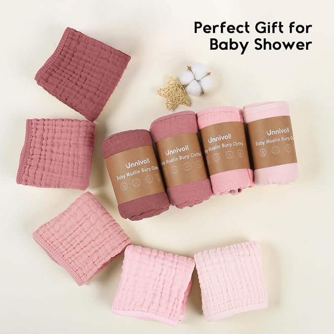 • Safety Comes First: Made from 100% premium quality cotton,Unnivoll muslin burp cloths is certified to meet Consumer Product Safety Commission (CPSC) guidelines, eliminate all potential risks and provide a soft, breathable, cloud like comfort for your little one. The natural muslin is also suitable for all skin types including sensitive and delicate skin, perfectly use on the face, hand and body.