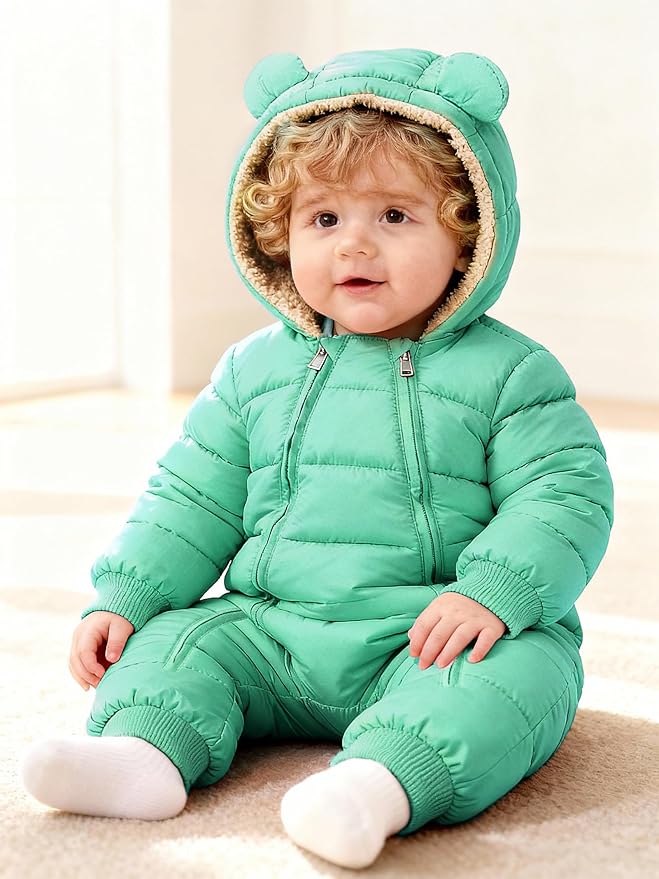 • Warm Fabric: Made from water-resistant fabric and fully fleece lined, this baby snowsuit keeps little ones warm, dry, and comfortable during chilly weather. Soft against delicate skin, it's gentle for newborns yet protective for outdoor