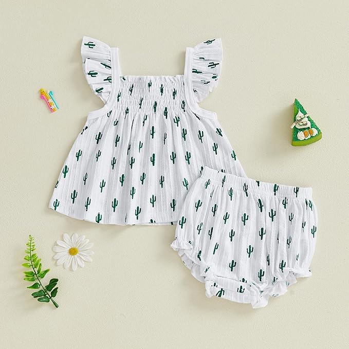 Mubineo Baby Girl Summer Clothes Cute Ruffle Tops Dress Shorts Outfits Set Infant Toddler Shrit Bloomers Princess Outfit
