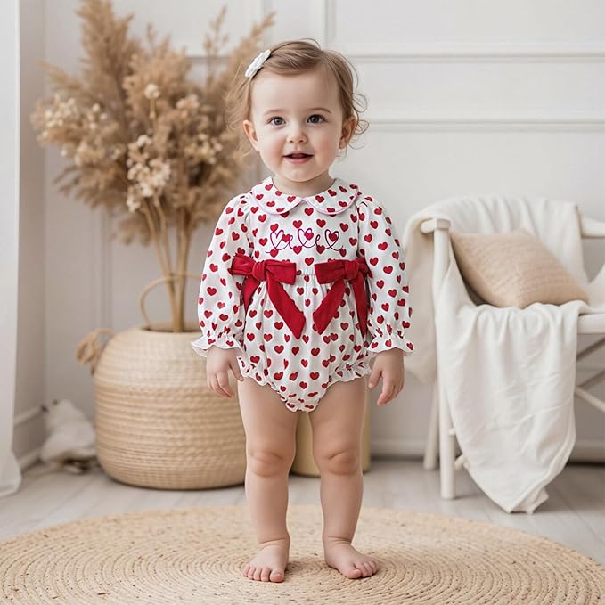 • Occasion]: Adorable baby girl valentine's day romper infant heart outfit spring clothes suitable for Valentine's Day,daily casual wear, coming home outfit for baby girl holiday clothes, cute baby girl photograph clothes, family party and birthday party,etc. valentines day clothes for girls, 1st valentines baby girl heart romper