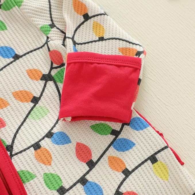 Baby Girl Boy Christmas Outfit Long Sleeve Lights Zipper Footie Romper Cute Newborn Infant Waffle Jumpsuit