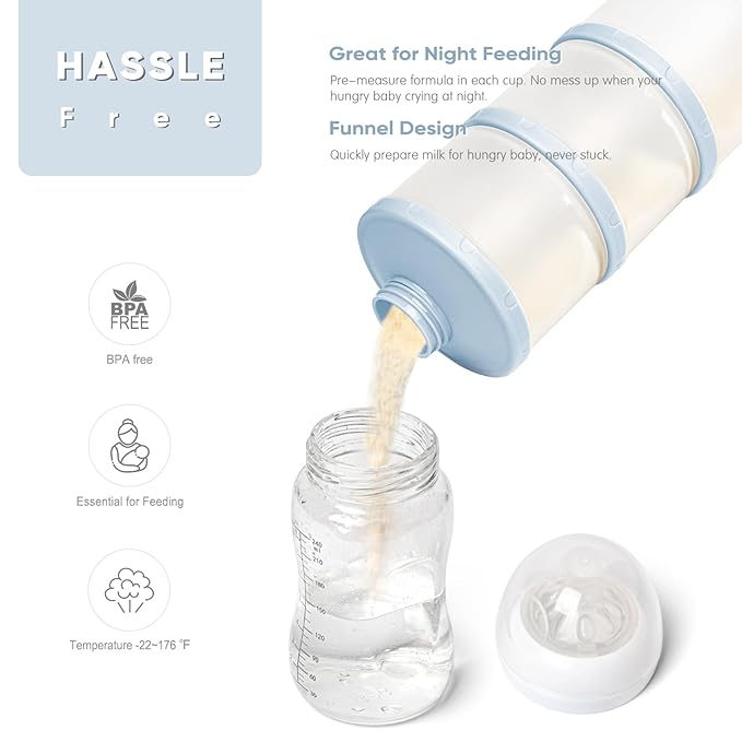 • Night Time Feeding: Pre-measure baby formula and store in the formula container, quickly make bottles at deep night or early morning. No hassle when hungry baby is crying.