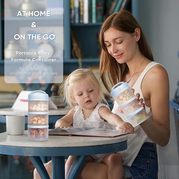 Termichy Stackable Formula Dispenser Portable Milk Powder Container, 2 Pack, Misty Blue