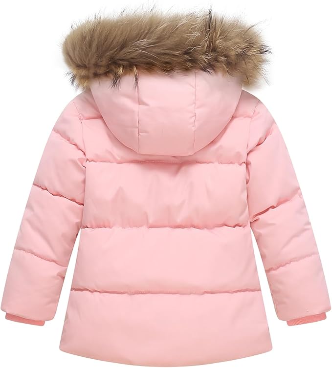 Kids Girls Winter Fleece Lined Puffer Jackets Fur Collar Hooded Parka Snow Coats