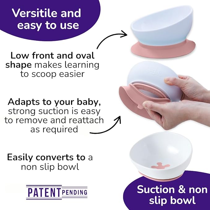 • Bowl converts from suction to non-slip – Strong suction base keeps meals stable; remove the base later for toddler-ready independence.