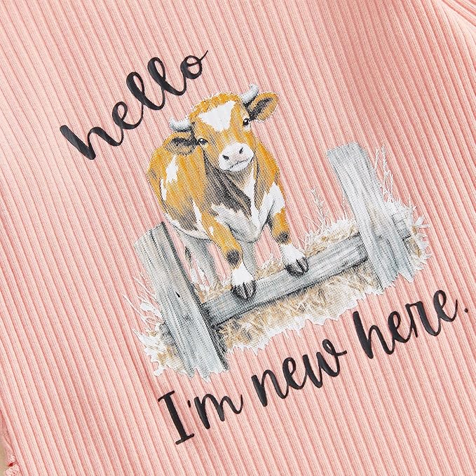 • DESIGN: Toddler long sleeve romper for girl, highland cow print, ribbed fabric, long sleeves, round neck, crotch buttons; And cute headband set, make your baby more adorable
