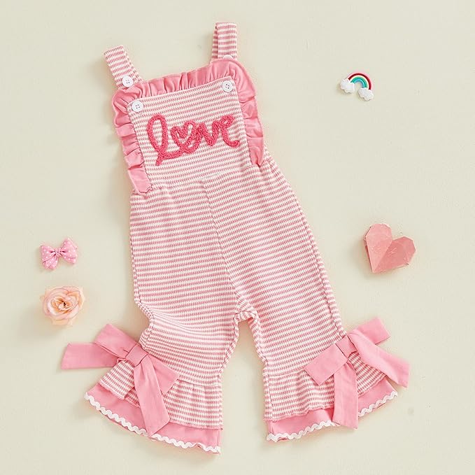 • Design:valentines day toddler girl outfit,toddler girl valentines day jumpsuit,baby's first valentines day outfit,valentines day baby girl clothes,1st valentines day baby girl outfit,toddler baby girl valentines day bell bottom romper,flare leg jumpsuit,Classic love heart patch,stripe print,cute ruffle square neck,sleeveless bell bottoms flare jumpsuits,cute valentines day clothes for toddler baby girls,making babies even cuter