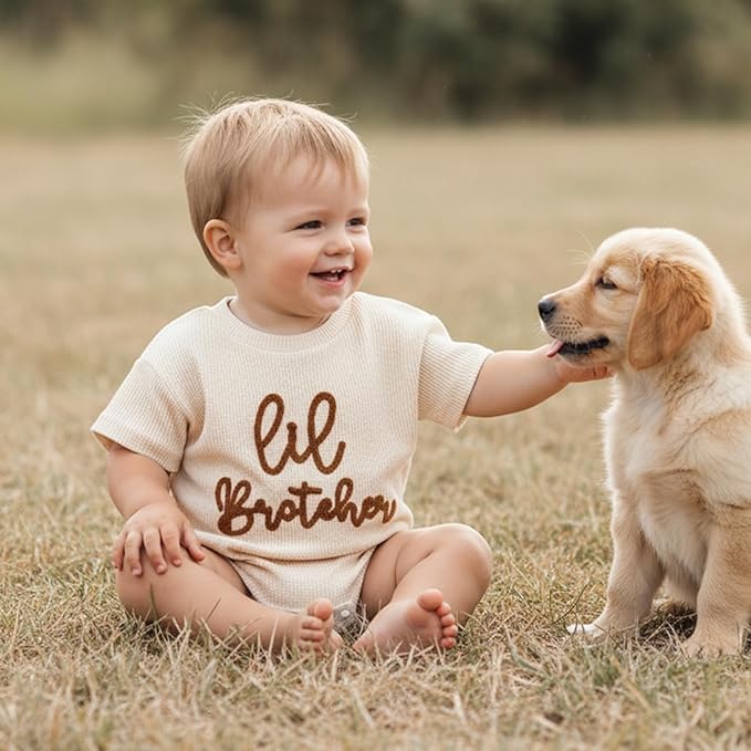 Little Brother Newborn Outfit Infant Baby Boy Lil Bro Shirt Bubble Romper Waffle Bodysuit Siblings Matching Clothes