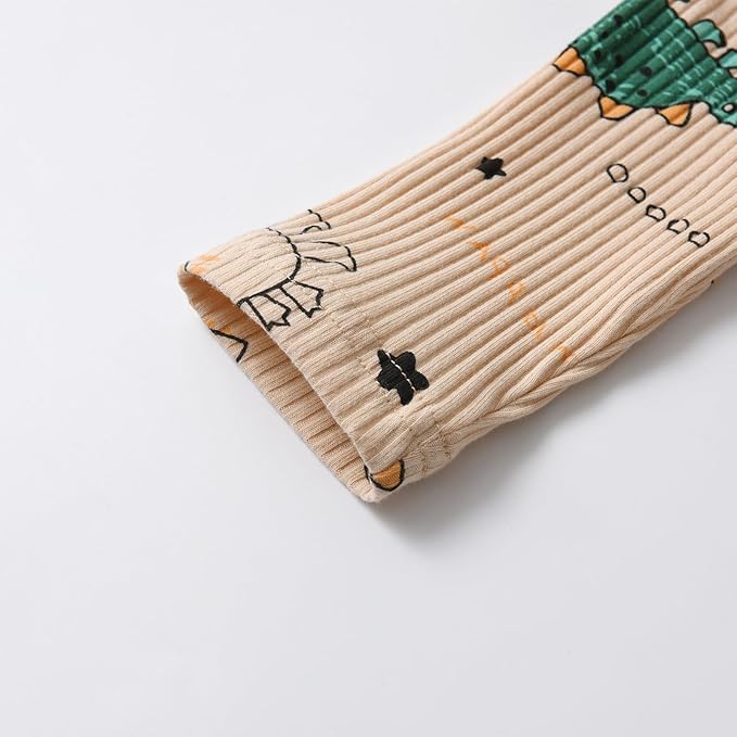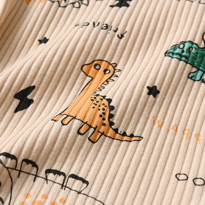 • Adorable Ribbed Dinosaur Print Design: Features cute dinosaur patterns on textured ribbed fabric, creating a playful yet sophisticated look perfect for photos and everyday adventures.